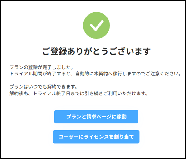 この記事の手順では、管理者様にて会員登録とプランを選択し、管理者様にトライアルユーザー様を招待いただきます。