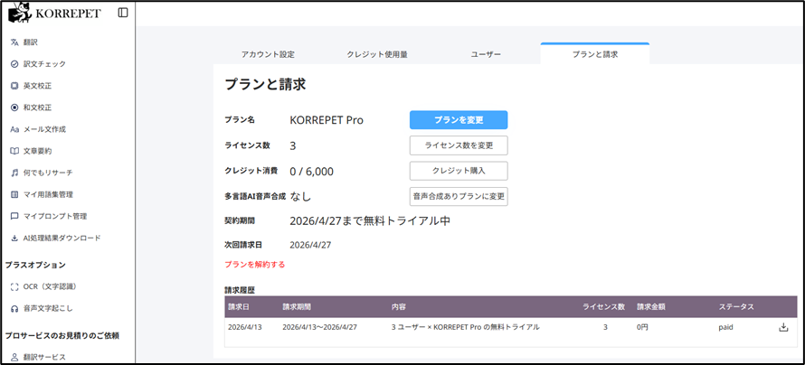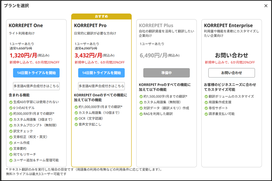 KORREPETには、すべてのプランで14日間の無料トライアル期間があります。