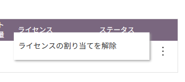 登録作業をした管理者様以外で、トライアルユーザー3名を選ぶときは右端の「︙」(縦三点)アイコンを押し、「ライセンスの割り当てを解除」をクリックしてください。