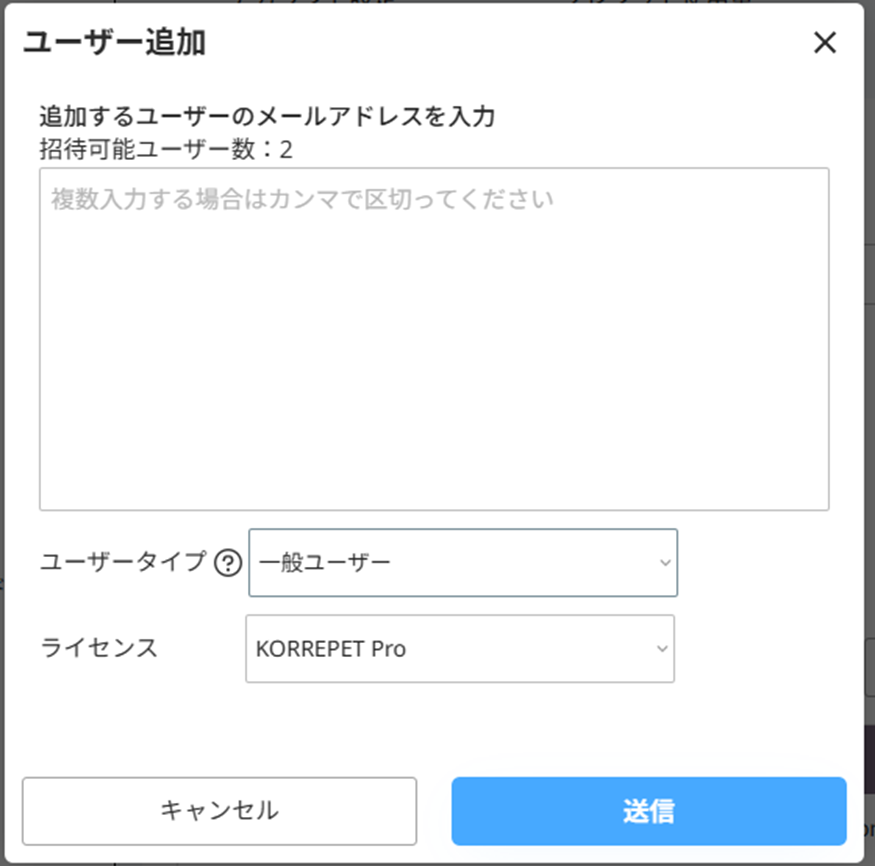 追加したいユーザーのメールアドレスを入力し、「送信」をクリックしてください。