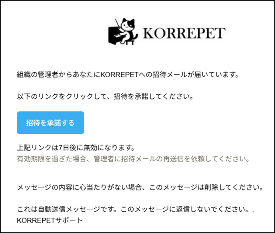 管理者様がユーザー登録したら、招待されたユーザー様に招待メールが届きます。