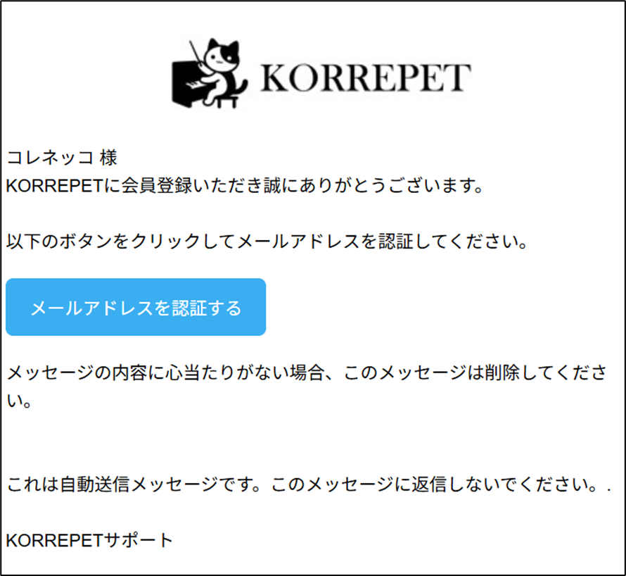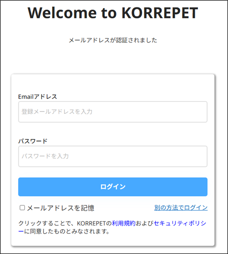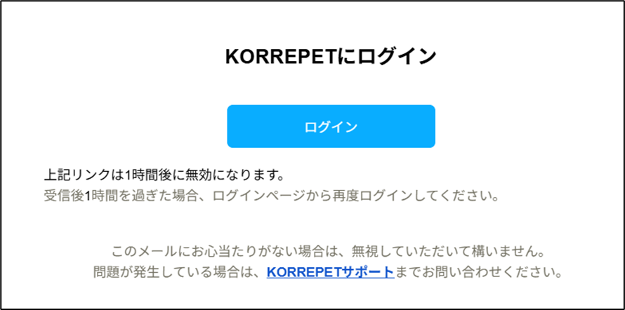 ログイン用の「KORREPETにログイン」メールが届きます。